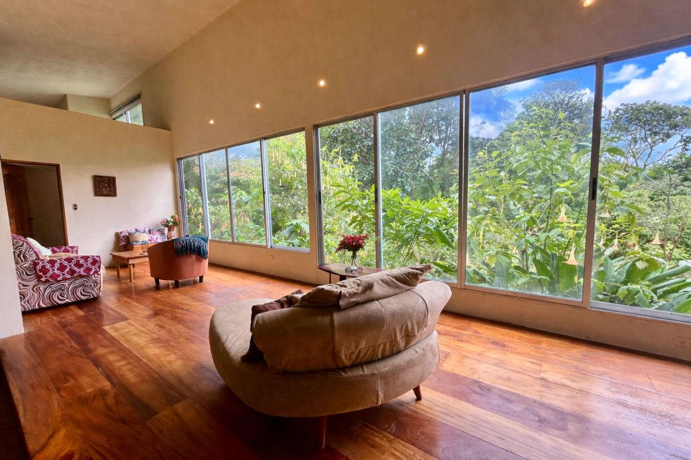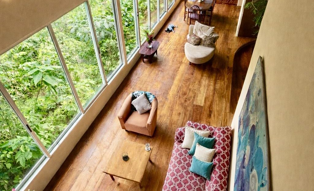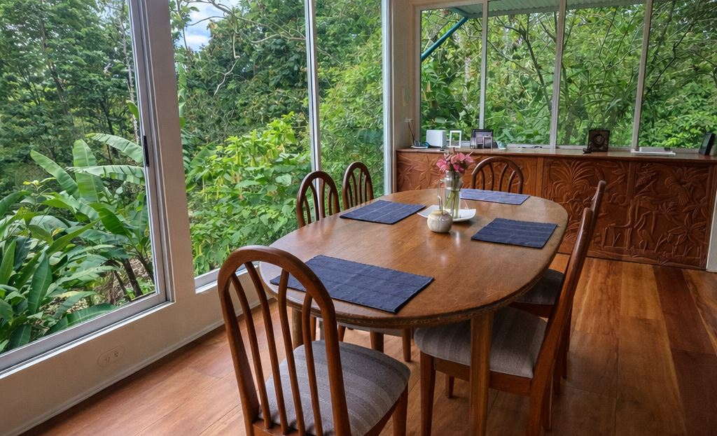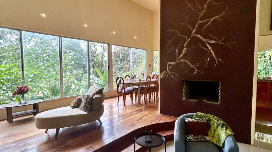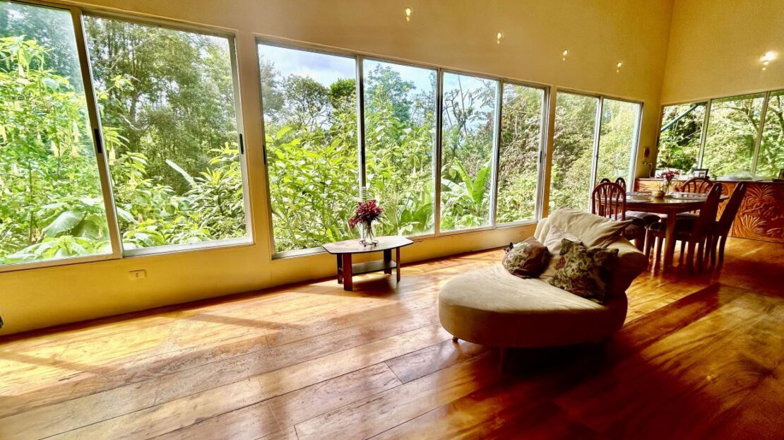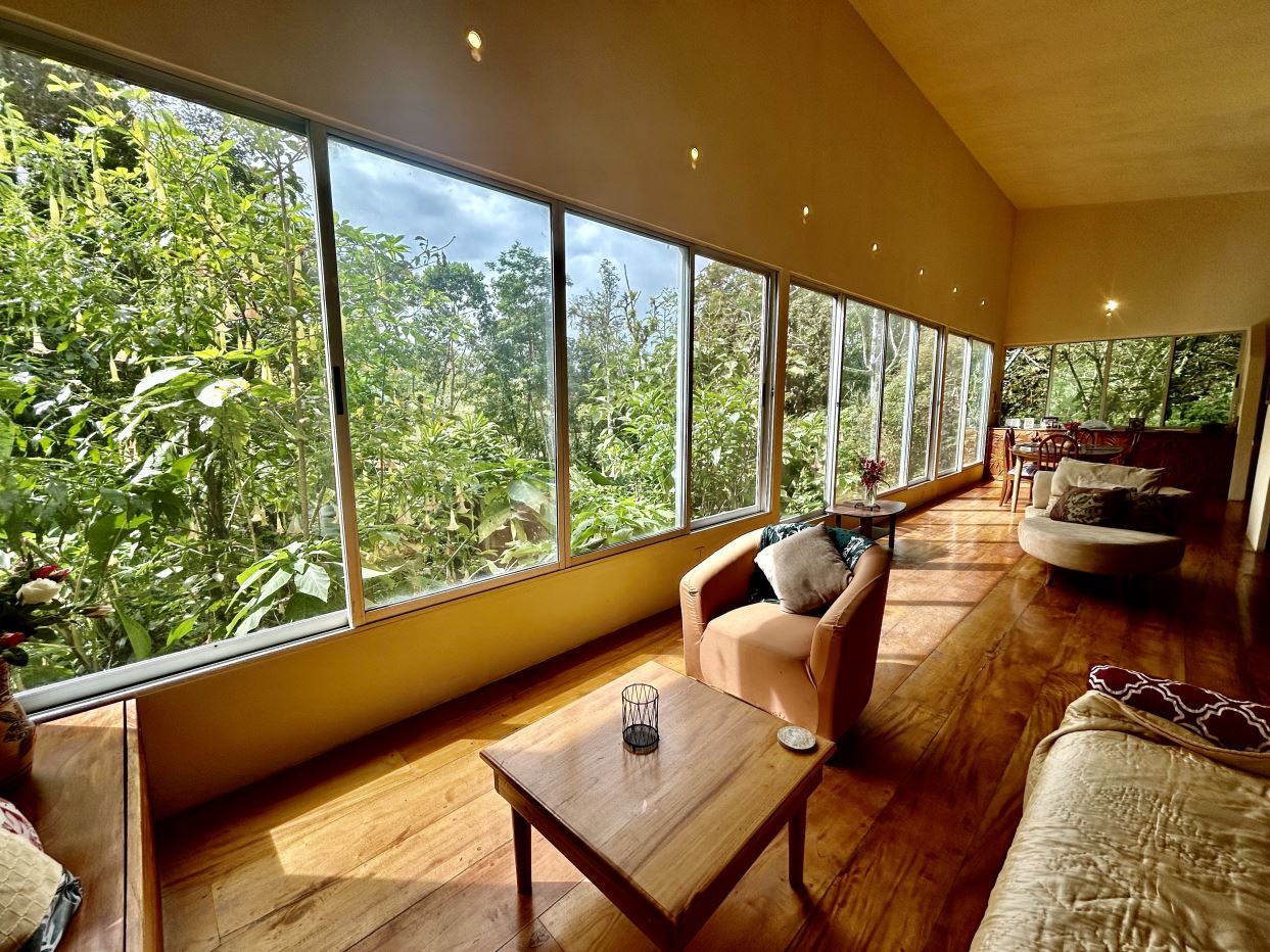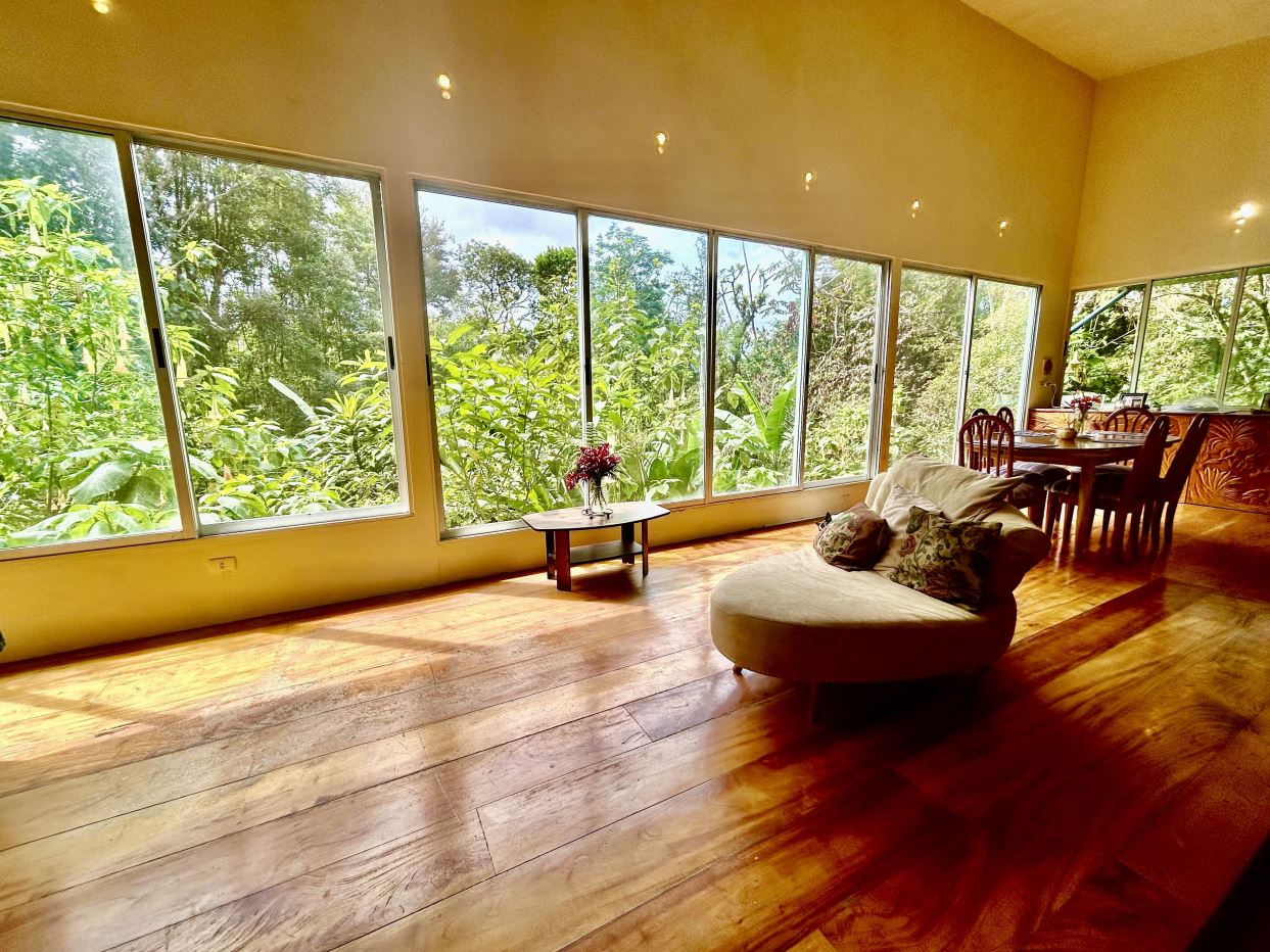 Set on 1.23 acres of established gardens and within walking distance to the town of Nuevo Arenal, this charming residence offers a rare blend of privacy, space, and everyday convenience. With over 3,000 square feet of interior living space, the home combines generous proportions with a garden-oriented setting that feels both peaceful and central.