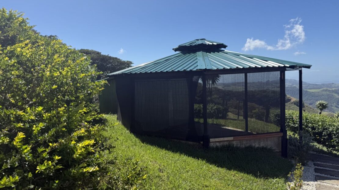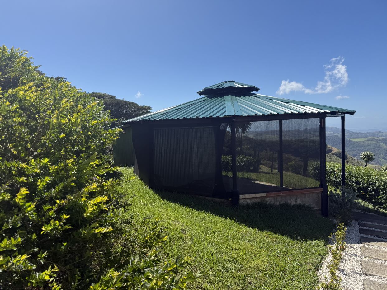 At the main entrance, a greenhouse welcomes you, highlighting the property’s sustainable and self-sufficient potential. One of the most impressive features is the gazebo, offering what may be some of the most incredible views in the region, ideal for relaxation, gatherings, or sunset watching.