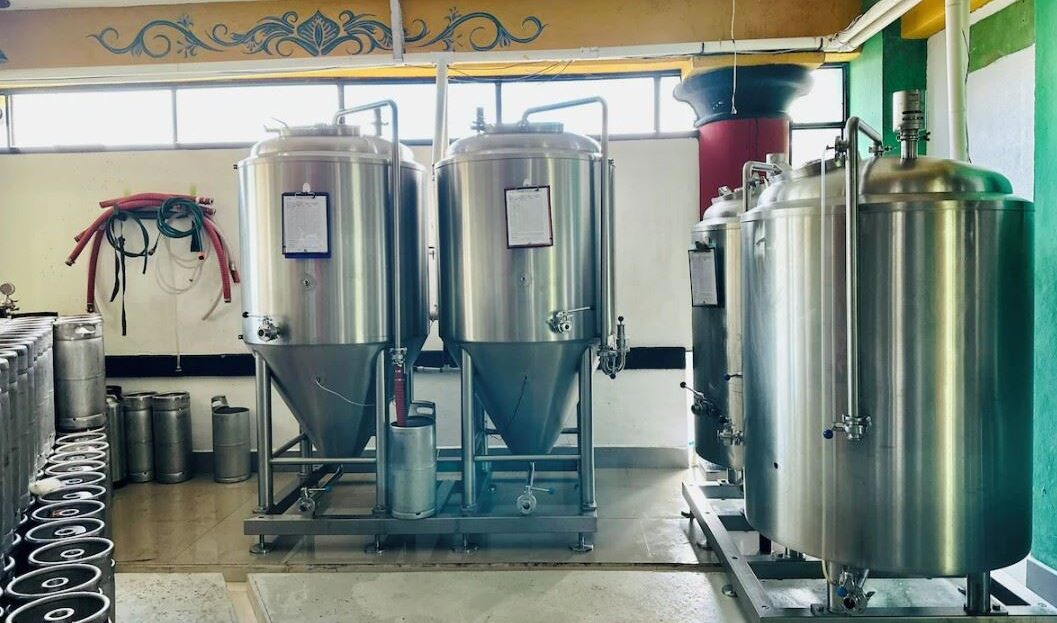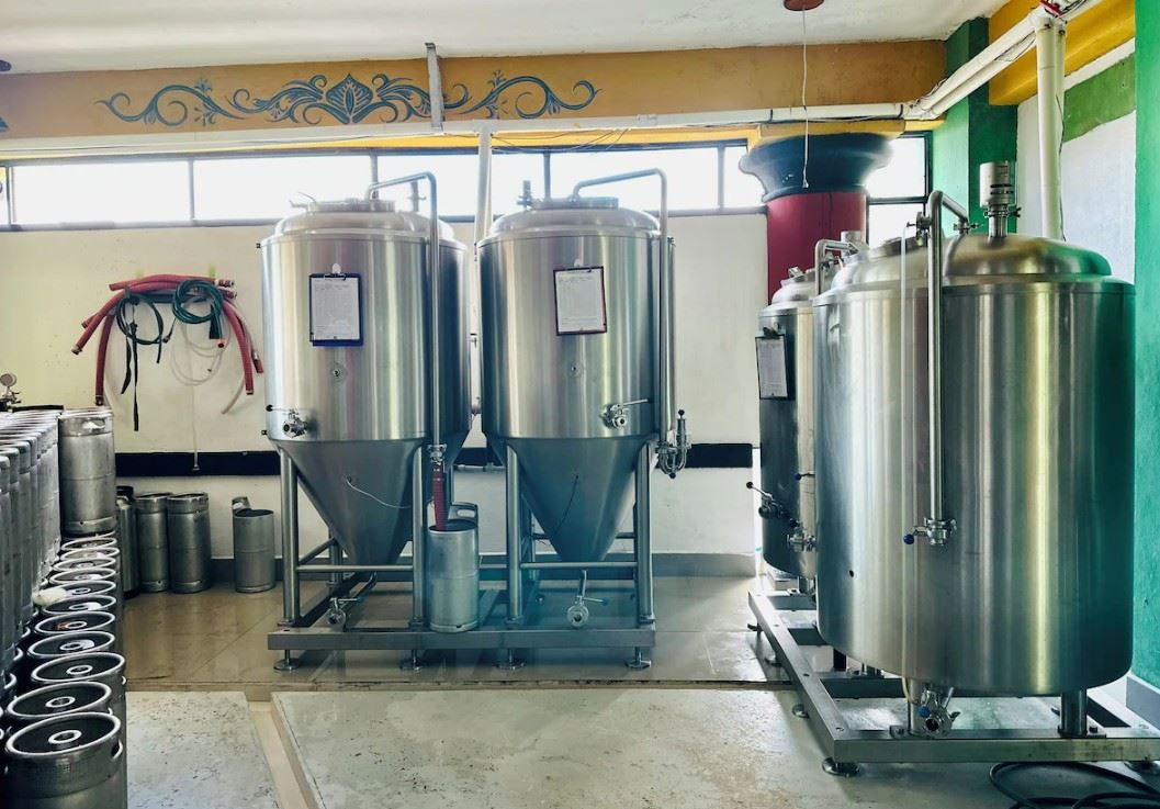 Cervecería artesanal operativa con todo el equipo de elaboración