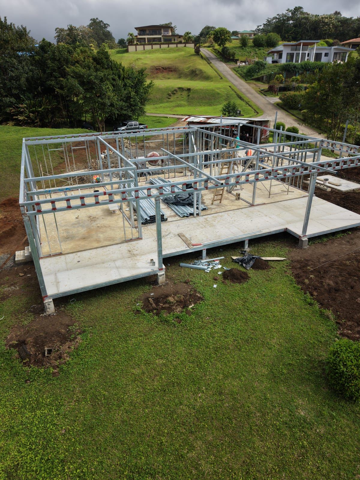 The property is complemented by a spacious 594 sq ft double-car garage, designed with flexibility in mind. One section of the garage has been thoughtfully planned to allow for potential conversion into a private studio. Plumbing and electrical infrastructure are being installed during the construction phase to facilitate this option, creating the opportunity for an income-generating component, ideal as a guest suite or short-term rental, capitalizing on strong demand in the Lake Arenal area.