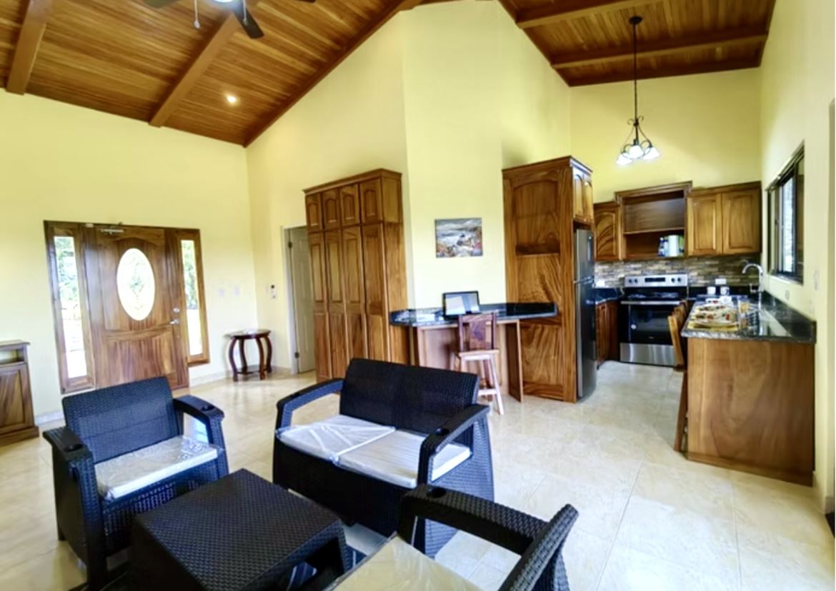 Discover peace, privacy, and possibility in this beautiful brand new two-bedroom, two-bathroom home located in the quiet town of Puerto San Luis, Tronadora overlooking the shimmering waters of Lake Arenal. The home offers the perfect retreat for retirees or anyone in search of a peaceful full time home or vacation getaway.