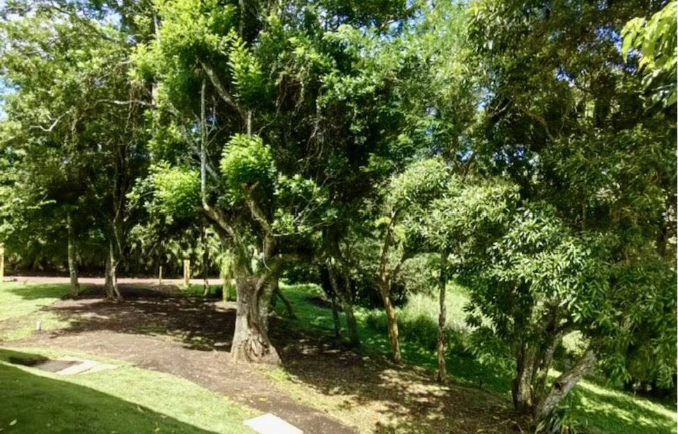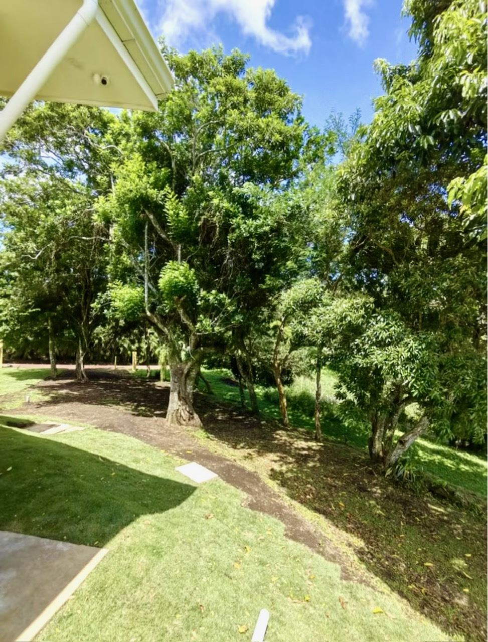 From the living room, step onto a covered terrace that opens to a vast expanse of green space—ideal for gardening, planting produce, or even building a guest casita or artist’s studio. This outdoor area, with mature fruit trees and fragrant flora, enhances the property’s sense of freedom and creative potential, all while framed by the natural beauty of the lake and surrounding landscape.