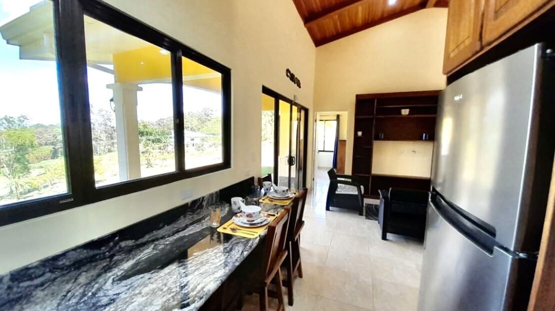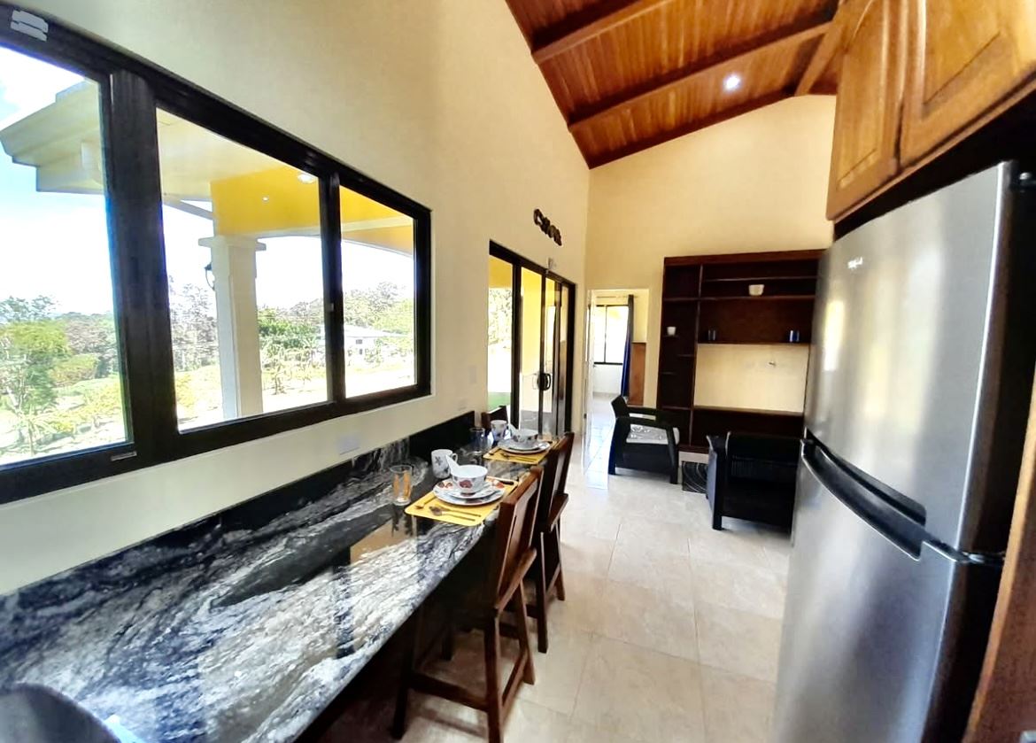 Thoughtfully designed with natural materials and artisan finishes, this 1,080 SF home features an open-concept kitchen, living, and dining area with custom Guanacaste wood cabinetry, granite countertops, new appliances, a picture-window breakfast bar with inspiring lake views, as well as a beautifully crafted built in workstation, perfect for writing, remote work, or creative projects.