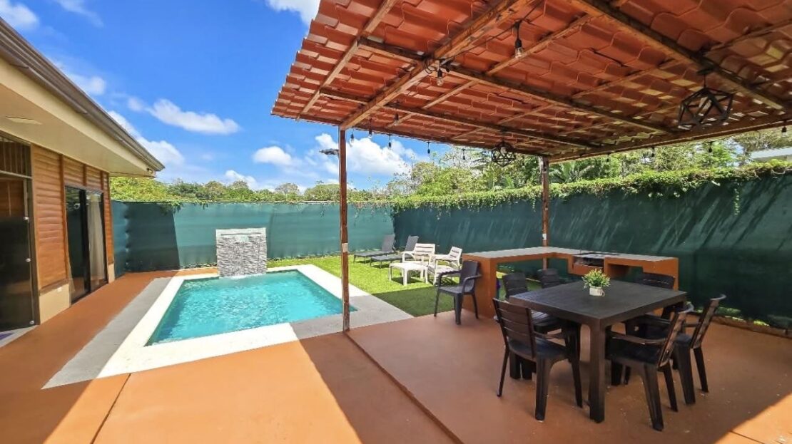 Lot size of 372 m² with a 92 m² home plus outdoor social area featuring a private pool and BBQ space, ideal for vacation rental in La Fortuna, one of the most visited destinations in Costa Rica.