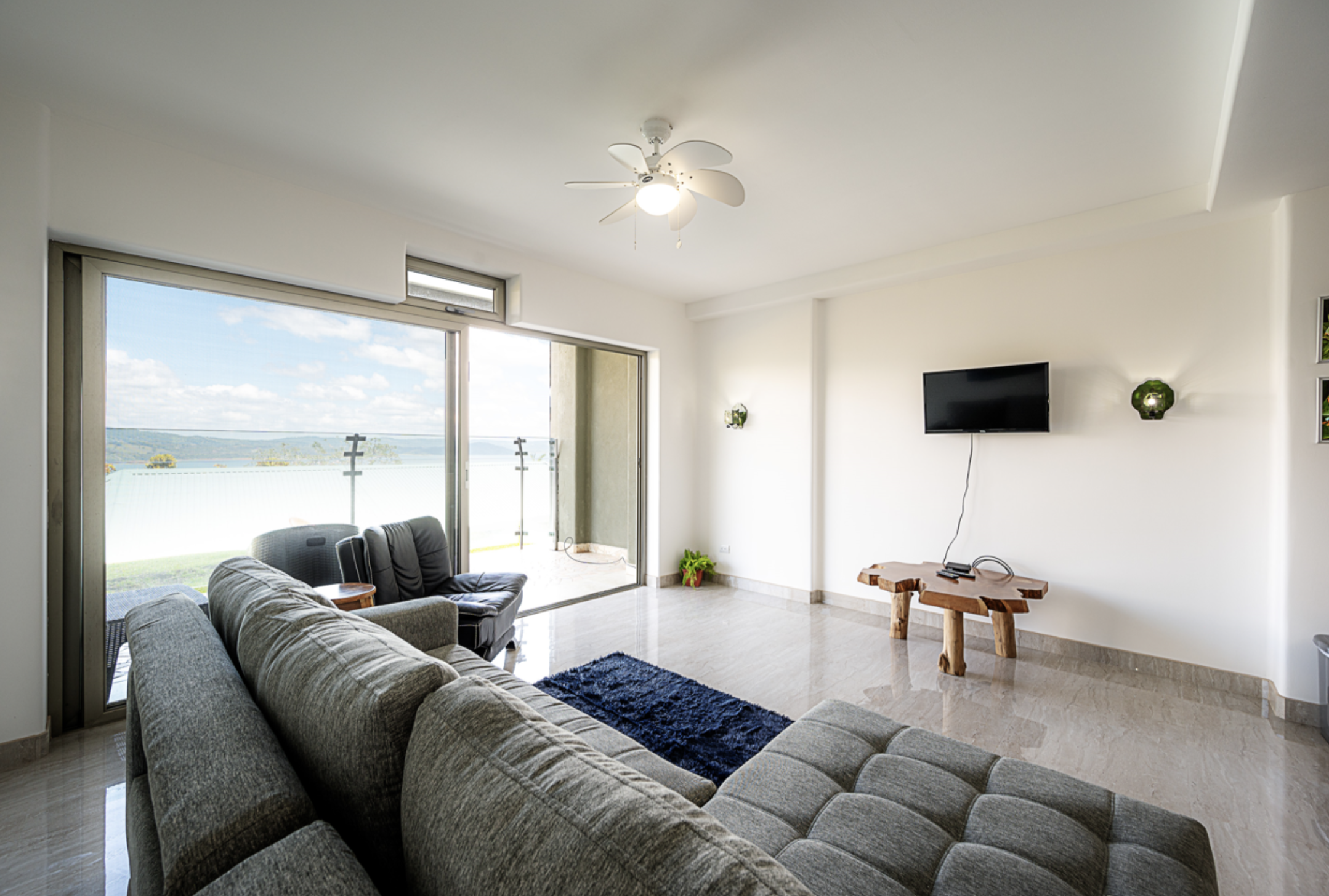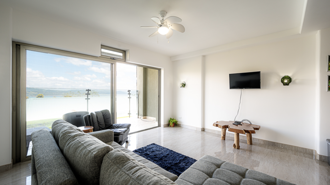 Extra-large balconies with glass fronts offer unobstructed views of Lake Arenal from every suite.
